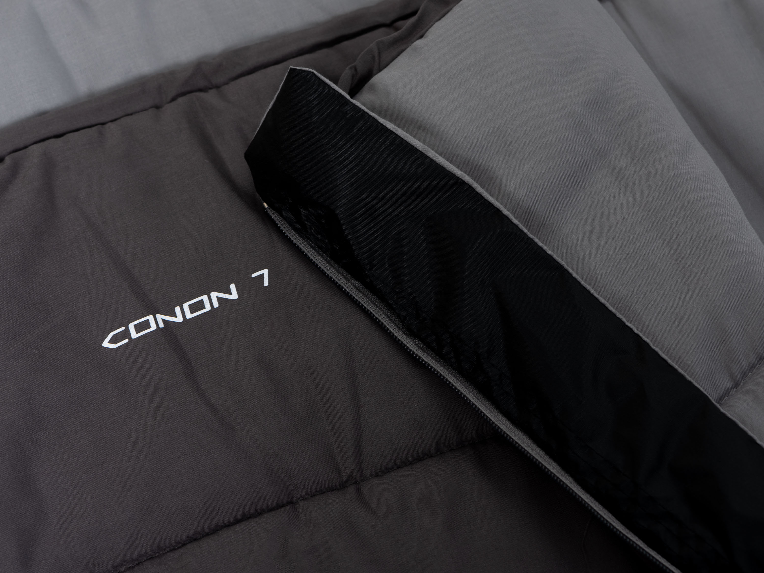 Спальный мешок Conon 7 High Peak - универсальный спальный мешок для весенне-летнего сезона. Внешняя и внутренняя ткань спальника выполнена из полиэстера и хлопка. Вдоль молнии идет защита от закусывания замком молнии ткани спальника. Чтобы холодный воздух не проникал сквозь молнию, ее закрывает тепловой клапан. В верхней части молния фиксируется клапаном на липучке Velcro. Спальник утеплен слоем силиконизированного утеплителя Dura Loft H1 Верх 1х200 г/м2 + Низ 1х200 г/м2. В комплекте со спальником идет транспортировочный компрессионный чехол из прочной ткани 210D Oxford. Разрешается стирка при 30 градусах. Максимальный рост пользователя 190 см.